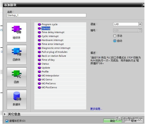 西门子S7-12001500博图中启动OB、循环中断 OB组织块