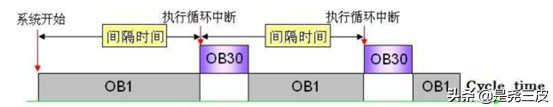 ● 循环中断 OB 在经过一段固定的时间间隔后执行相应的中断 OB 中的程序。