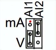 图5 变频器模拟量输入通道接线 图6 变频器模拟量输入通道拨码开关选择