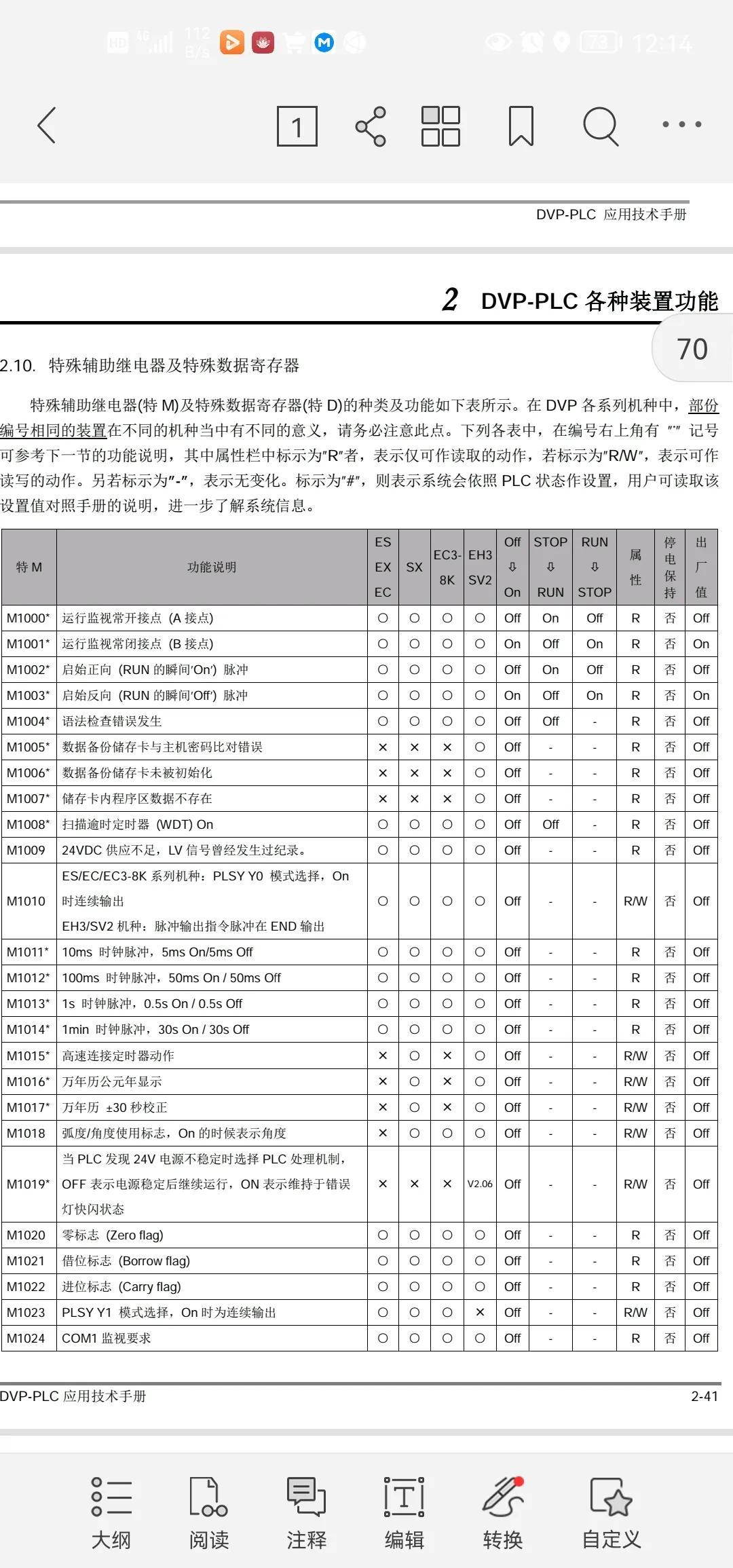 比较常用的比如m1000,plc只要一运行就一直通。在可以用短接信号用。m1001plc运行后,就一直断开。可以用作断开一些不用的程序。m1002plc运行后通一次上升沿。可以用作一些初始化的东西,比如复位一些继电器。m1011/m1012m1013属于时钟脉冲,配合inc加一指令,可以计时用。