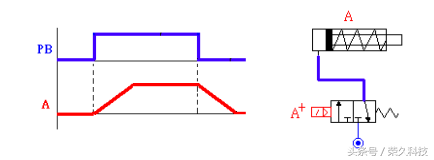 当按钮开关PB ON,则气压缸前进A+