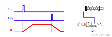 2、A为单动缸,以单边电磁阀控制