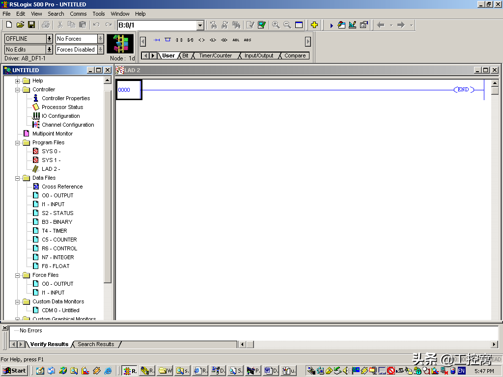 1、运行RSLogix500,Start->program->Rockwell software-> RSLogix500.点击出现如下画面