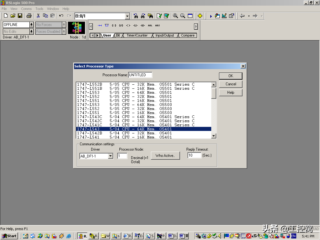 选择处理器类型(本次实验处理器为1747-L541,,点击OK按钮,进入工程画面。