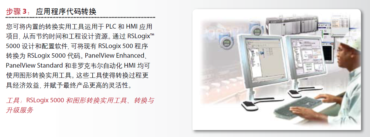 工具:RSLogix 5000 和图形转换实用工具、转换与升级服务通过分阶段升级支持,协控自动化兼具行业知识和全球服务支持能力,将与您携手努力,确保将 SLC 控制器平稳地转换到灵活、可扩展的集成架构。