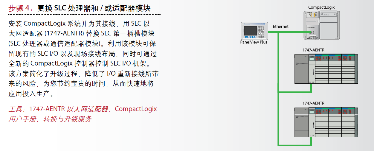 工具:1747-AENTR 以太网适配器、CompactLogix 用户手册、转换与升级服务