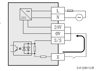 漏型24V DC电源接法,将公共端SS与24V短接,其他信号接入X输入端即可