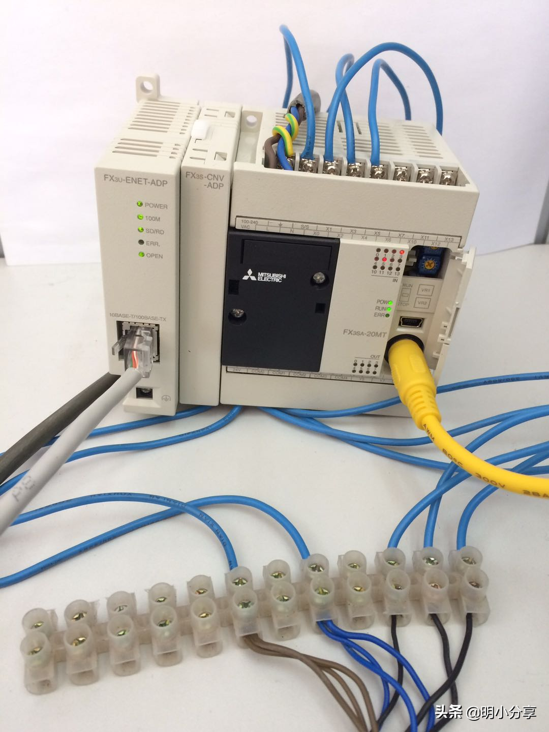 简单介绍PLC的连接。以三菱PLC为例进行说明,型号为FX3SA-20MT-CM,为漏型PLC,可以接NPN传感器。