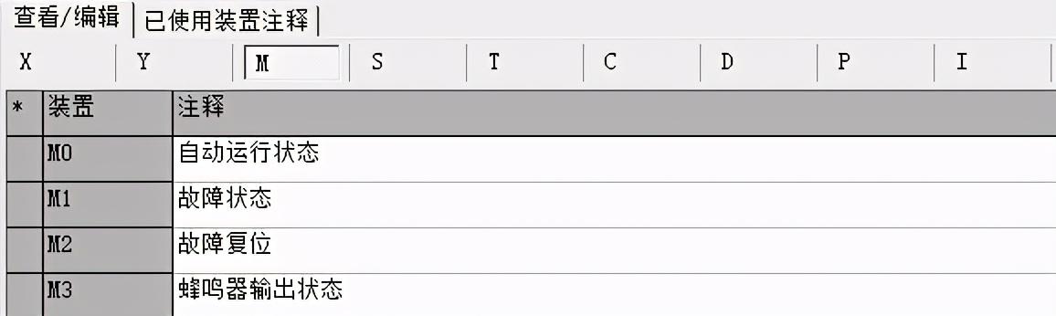 1、装置注释表及其使用情况:可设置X,Y,M,D,S等等寄存器的注释;也可以查看哪些寄存器已被使用。如下图所示: