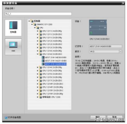 比如我们用的PLC是CPU1214C,要创建一个S7-1200项目,我们就选择控制器,在里面找到CPU1214C。