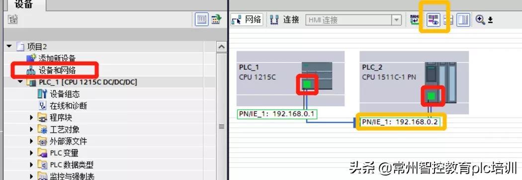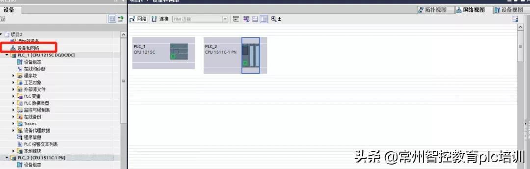 在网络视图中我们可以查看添加的设备及做通讯时我们需要将两个设备连接起来,都需要在网络视图中完成。(如下图1-4)