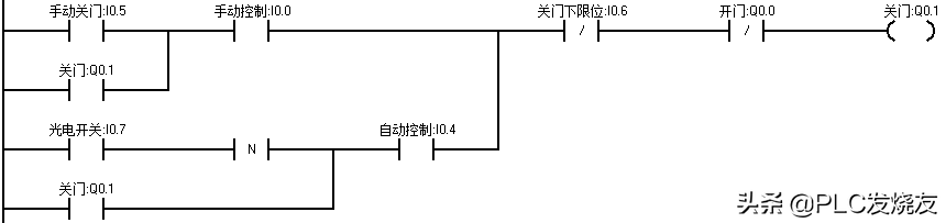 输入信号:开门开关I0.0;关门开关I0.1;停止开关I0.2;开门限位开关I0.3;关门限位开关I0.4;安全开关I0.5。