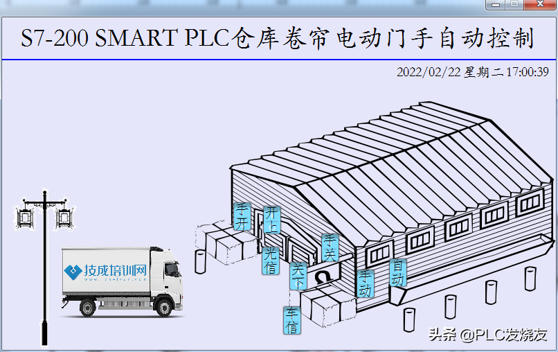 西门子S7-200 SMART PLC仓库卷帘电动门手自动控制