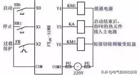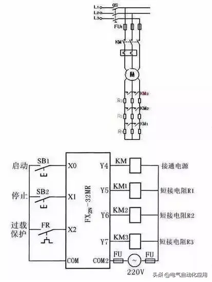 PLC的输出信号:电源接触器KM、短接R1接触器KM1、短接R2接触器KM