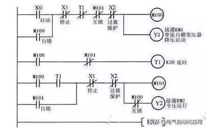 三相异步电动机的串自耦变压器降压启动控制梯形图