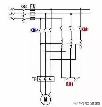 首先我们先确定一下按钮、KM的使用辅助触点情况,这里是正反转的主回路,主回路必须有互锁电路,其他的按钮用常开触点。