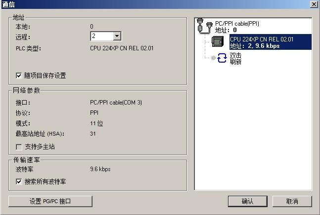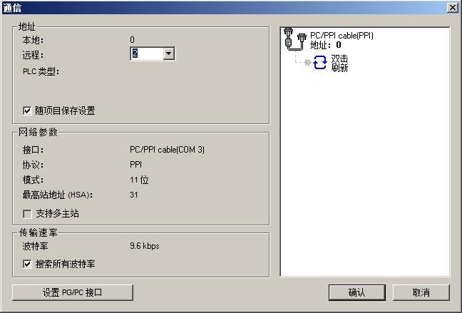 选择完成以后,我们就可以尝试跟PLC进行通信测试。在通信对话框双击刷新按钮,等一会儿就可以找到PLC的具体型号,这样就表示连接成功了。