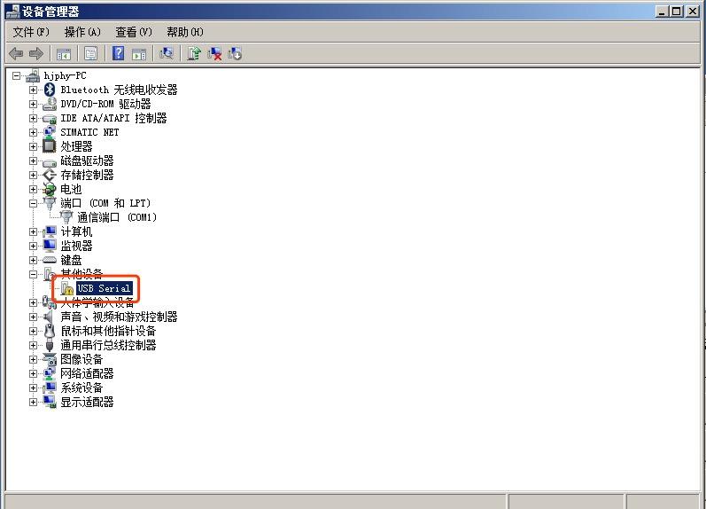 有了硬件其实还是没用的,像我们这种老鸟,肯定知道还需要驱动程序。我们把USB插好以后,在设备管理器里面,明显看到一个黄色的惊叹号,这种情况下,肯定是不能用的,如下图所示: