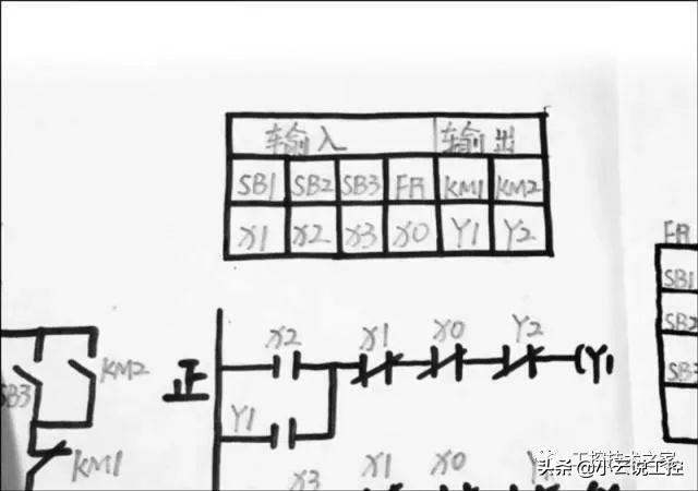 来看一下,如何进行地址编码,我们将SB1停止按钮地址编码为x1,SB2地址编码x2,SB3,地址编码x3热机电器,地址编码x0输出KM1交流接触器,地址编码Y1,KM2地址编码Y2, 我们来看一下,如何来画梯形图,梯形图和电气控制原理图是对应的。