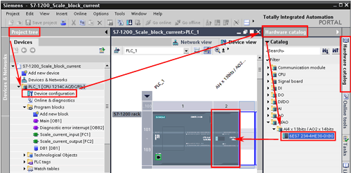 浏览硬件目录。在硬件组态中拖拽并释放设备到 S7-1200 机架上。