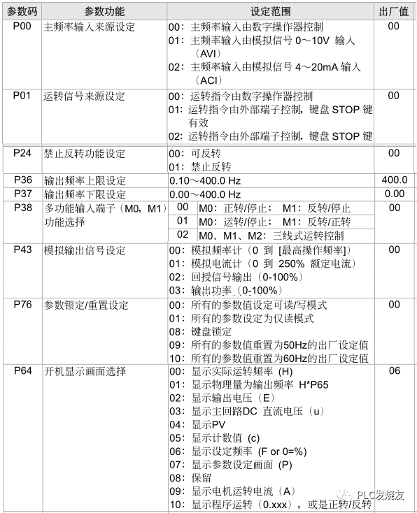 2、 P00 参数设为:01