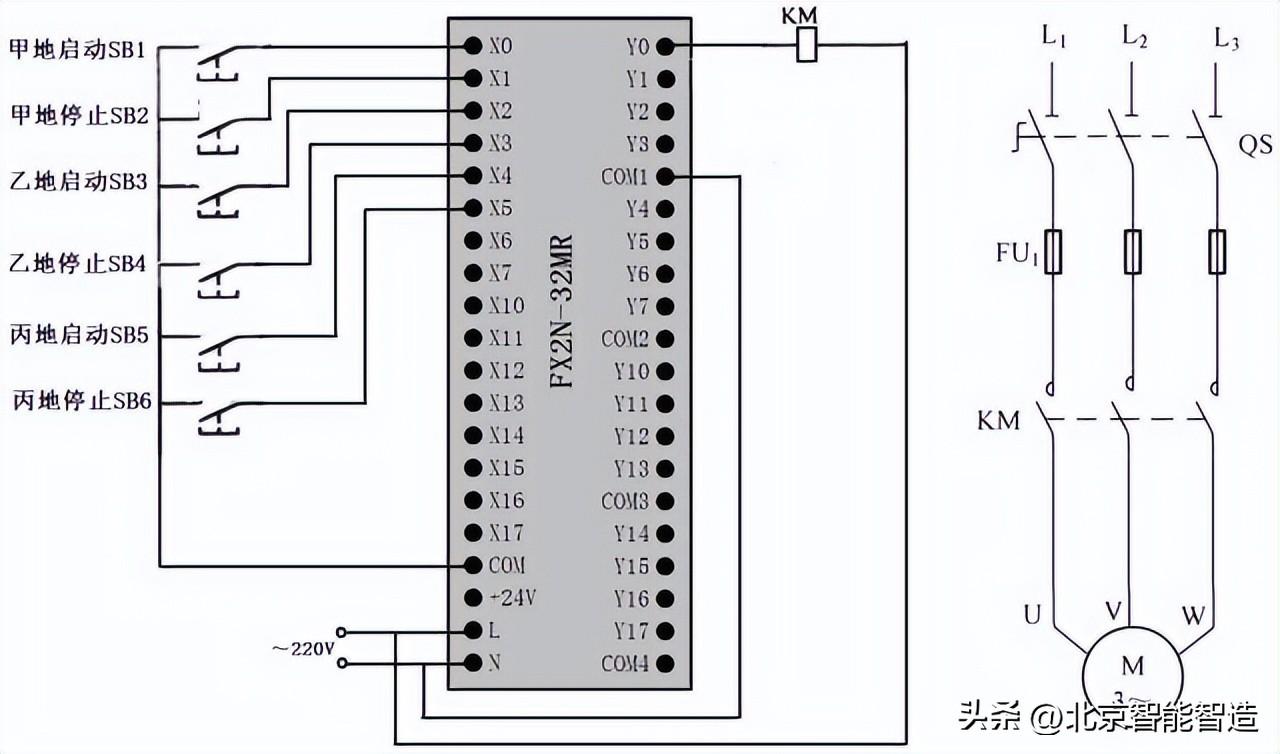 PLC编程基本功:多地控制的PLC线路与梯形图