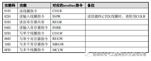 这里需要说明的是,信捷PLC已经集成Modbus协议集,支持Modbus协议通讯主、从机模式,并将其内部的寄存器和Modbus寄存器做了对应,这里我们使用的是其从站模式。可编程控制器内部元件编号与对应的Modbus地址编号如下表示:
