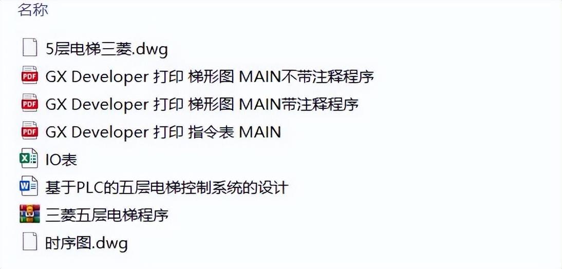 设计一套基于三菱PLC的五层电梯,用GX Developer 编写的梯形图程序,可以通过程序仿真,以及CAD软件绘制的电气原理图、PLC接线图与时序图。