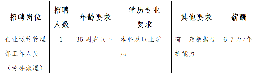 大专以上学历,能熟练使用办公软件,40岁以下,单休,五险,节假日福利,春节两周以上假期。