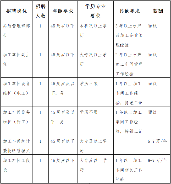 市远洋渔业集团为市属重点国有企业,因集团下属公司经营发展需要,按照公平竞争、择优聘用的原则,面向社会公开招聘若干工作人员岗位: