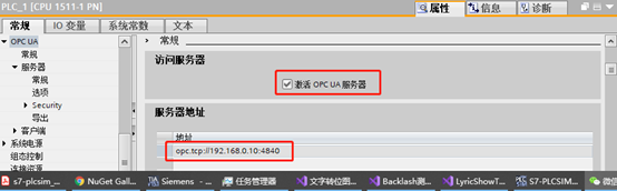 也可以使用Simatic Net或第三方OPCUA服务器实现,如Kepware,实现途径稍有区别,不过内置的OPCUA服务器使用起来最方便。