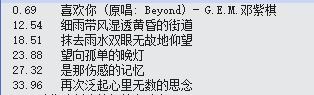 LRC 歌词格式解析LRC歌词格式比较简单,在每一行内容中,方括号之间存放歌词时间,之后的存放歌词内容,如下图。