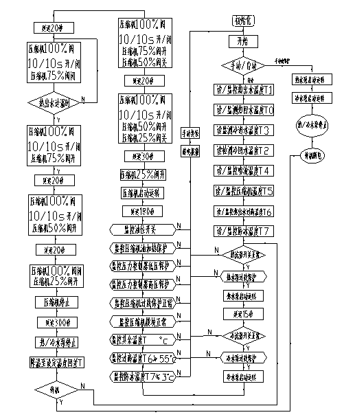 水源热泵项目为吉林梅河口7800平米的中小商场供暖立项,对这个项目,本人初使的设计构思,就是设计复杂,但操作极其简单,维护简便。现在从水源热泵的主电路设计、控制电路设计、PLC和触摸屏HMI的设计均实现了水源热泵制热机组的工艺条件,运转良好。该项目的成功实施,也带动了水源热泵在周边地区的进展,使之成为带标志性的项目。