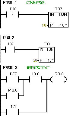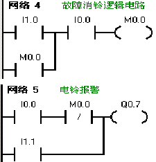 输入信号设置:I0.0故障信号;I1.0为消铃按钮;I1.1为试灯按钮