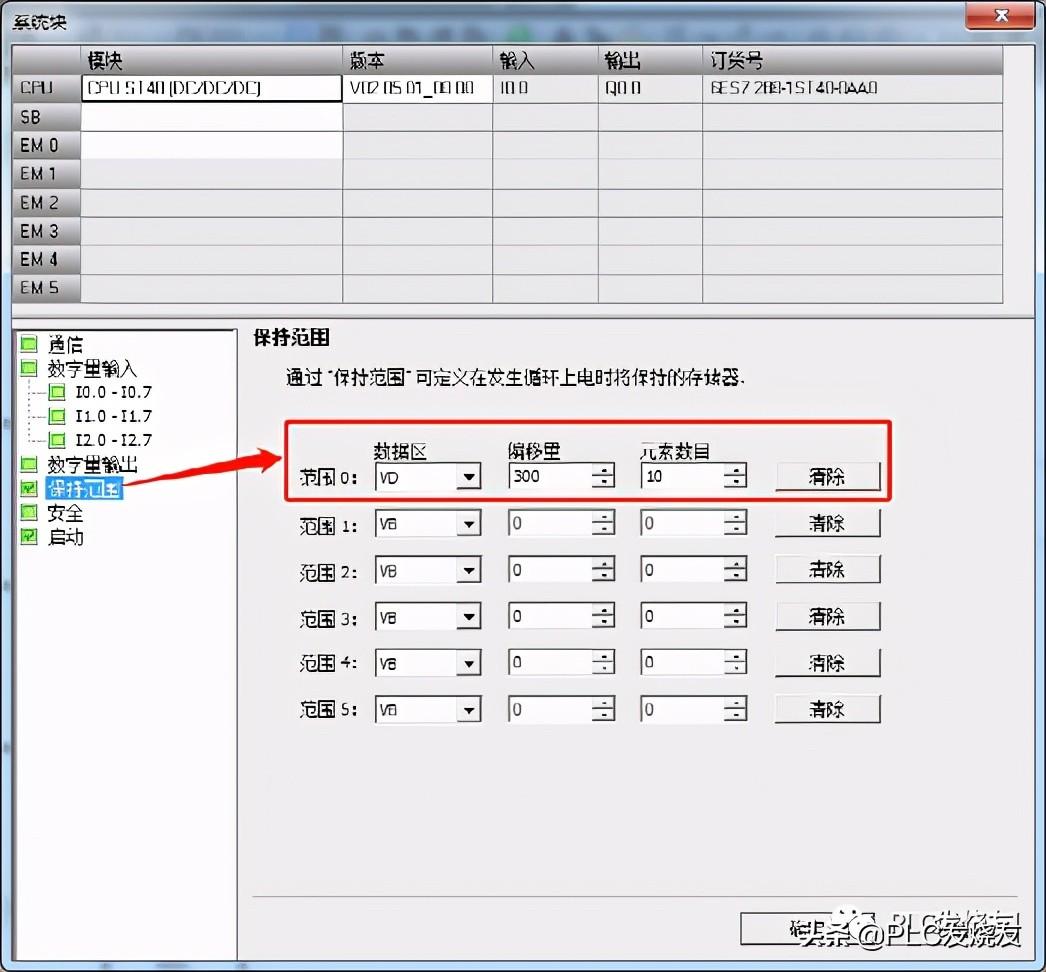 打开系统块—保持范围—选择存储器类型,设置存储区区域