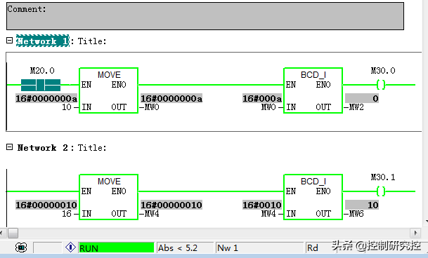 再进一步来说一下BCD端是要求16进制的问题,下边看一个西门子300的程序切图: