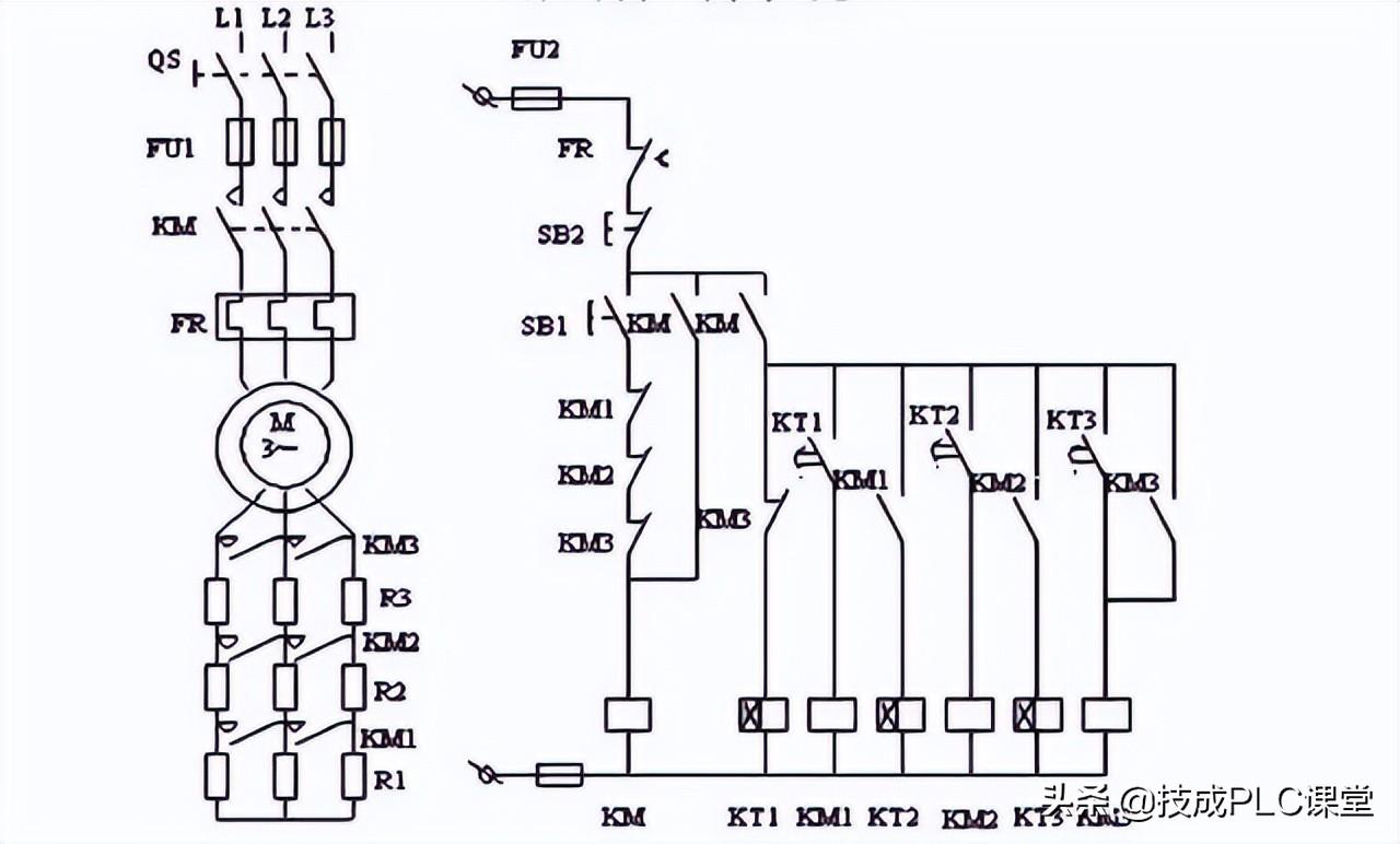 六、三相绕线感应电动机转子绕组串电阻降压启动控制系统 (I/O分配表、PLC接线图、梯形图程序)