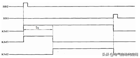 任务要求用PLC来实现图Y-△减压起动的控制电路,其控制时序图如图所示。利用PLC基本指令中的串、并联及输出指令可实现上述控制要求。