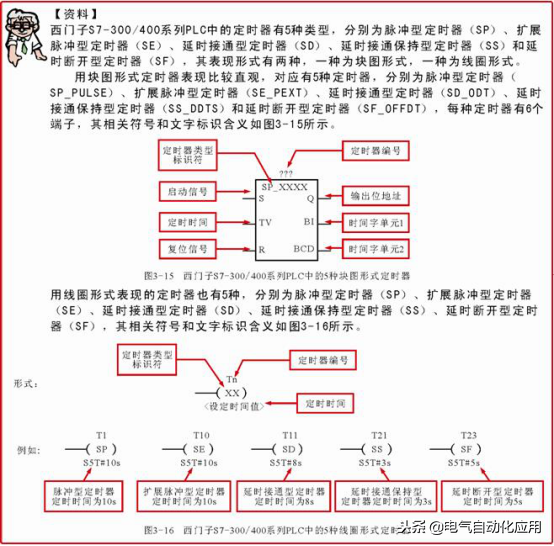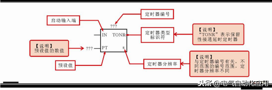 ①接通延时定时器(TON)的标注。接通延时定时器是指定时器得电后,延时一段时间(由设定值决定)后其对应的常开或常闭触点才执行闭合或断开动作;当定时器失电后,触点立即复位。