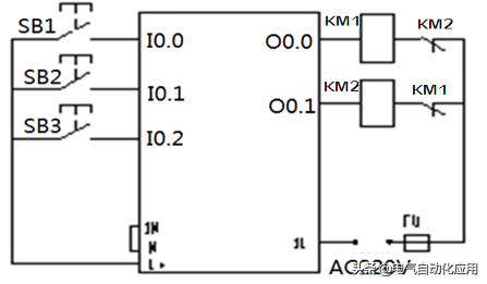 由上述控制要求可确定PLC需要3个输入点,2个输出点,其I/0地址分配如下: