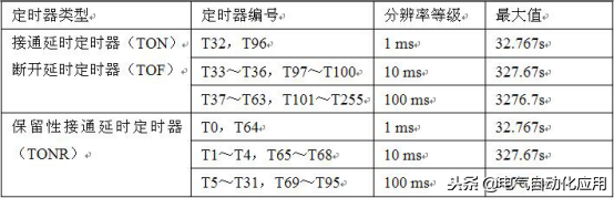 表3-3 西门子S7-200定时器号码对应的分辨率等级及最大值等参数