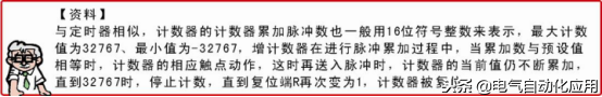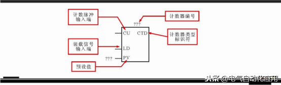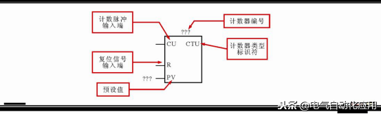 ①增计数器(CTU)的标注。增计数器(CTU)是指在计数过程中,当计数端输入一个脉冲式时,当前值加1,当脉冲数累加到等于或大于计数器的预设值时,计数器相应触点动作(常开触点闭合,常闭触点断开)。