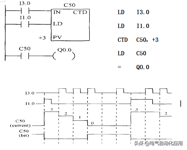 例如,某段PLC梯形图程序中计数器类型为CTD,减计数器,编号为C1,预设值PV为3,如图3-20所示。