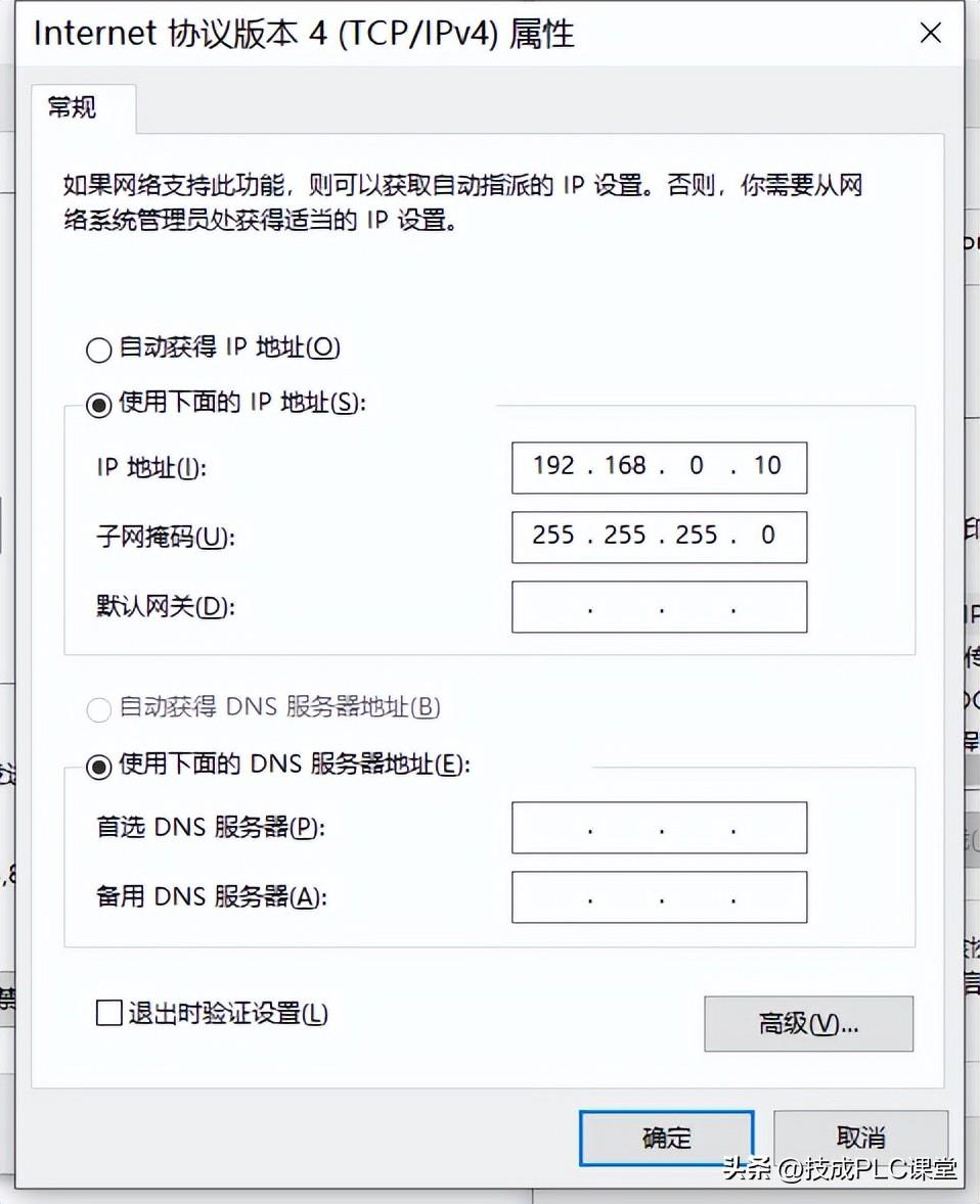 一、设置IP地址,要保证PLC的IP地址和电脑IP地址在同一网段,但是不能是一样的地址。