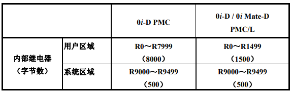 R地址是PMC的内部继电器地址,可当作输入点使用,也可以被用作继电器线圈当作输出点使用。R地址在PMC中仅作为中间继电器(中间变量)使用,自身的状态变化不会像G地址与Y地址那样引起CNC系统或者机床本身执行相关动作,R地址的范围如下图所示:
