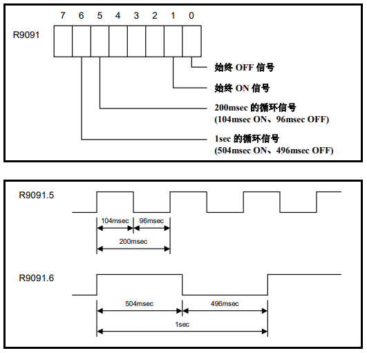 R9091.0、R9091.1为始终信号,R9091.5、R9091.6为循环信号