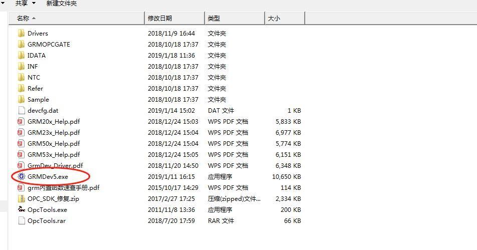 用电脑打开 GRM530/S6530 的配置软件 GRMDEV5.EXE/SDEV.EXE。(注意软件下载后解压即可以用不需要安装) 解压后点击文件夹里的程序应用图标如下图: