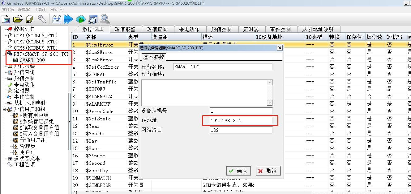 现场的 PLC200 与模块 GRM530/S6530 的连接线硬件接好了。接下来我们打开自己的电脑,开始配置短信触发时的成立条件和内容。