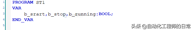 这里以一个启动/保持/停止控制为例,给大家介绍PLC的几种常用编程方式。下图为示例相关变量的定义。