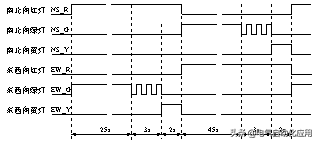 根据十字路口交通信号灯的控制要求,可画出信号灯的控制时序图。